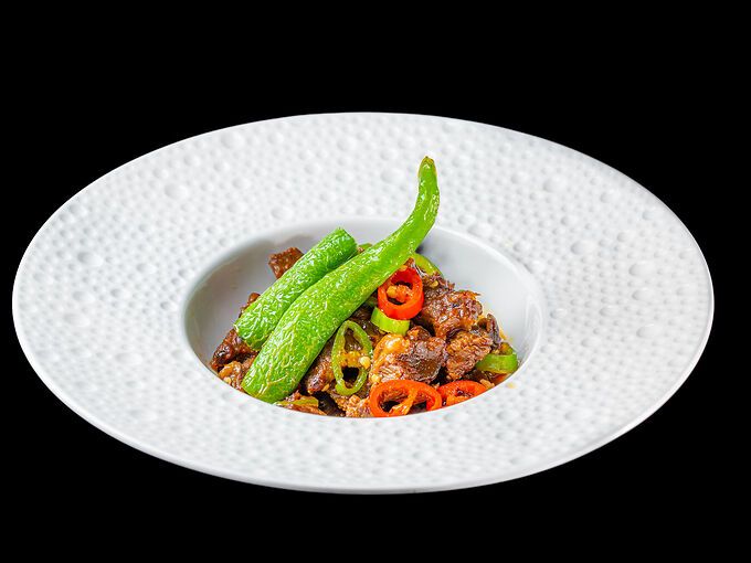 Manzo piccante brasato alla Sichuan (manzo brasato, salsa piccante, peperoncino)
