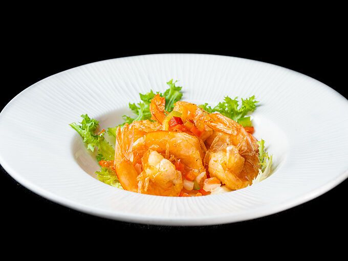 Gamberi (mazzancolle) saltati con verdure