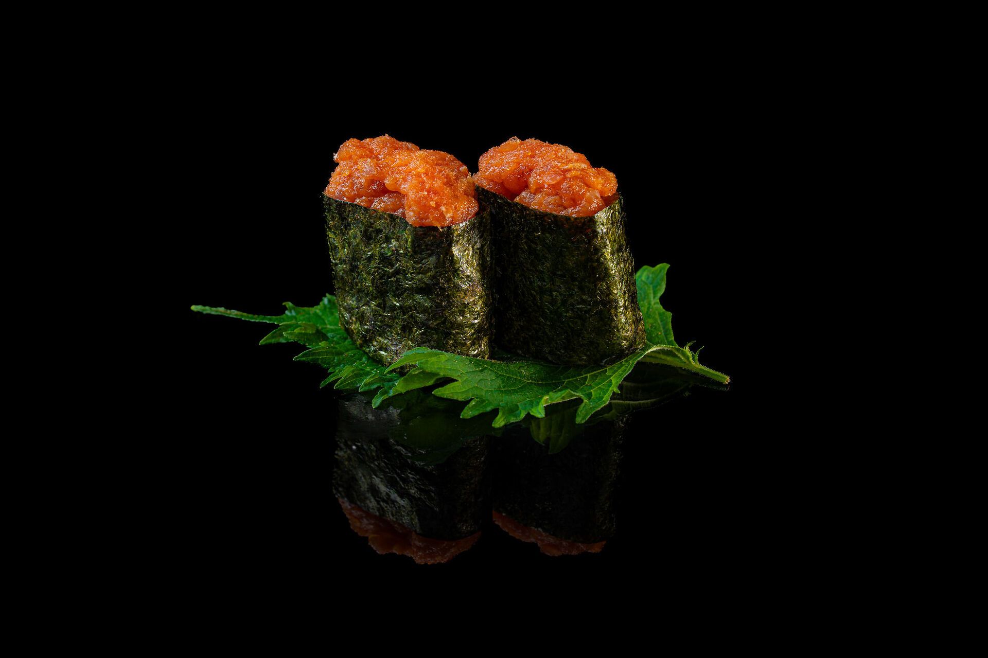 Base di riso, tartar di tonno spicy, avvolto da alga nori