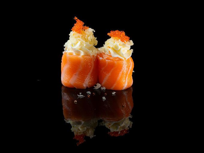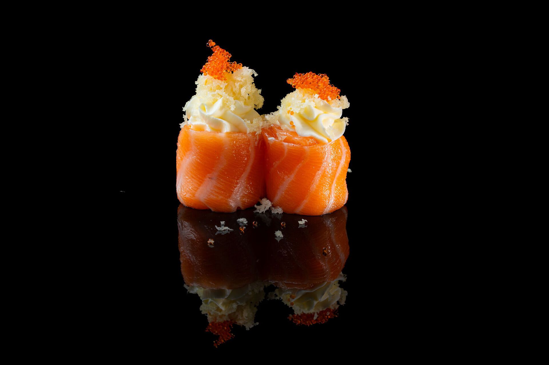 Riso, salmone, tempura, philadelphia, Tobiko e salsa Teriyaki