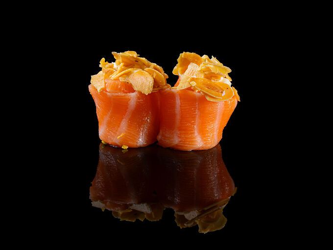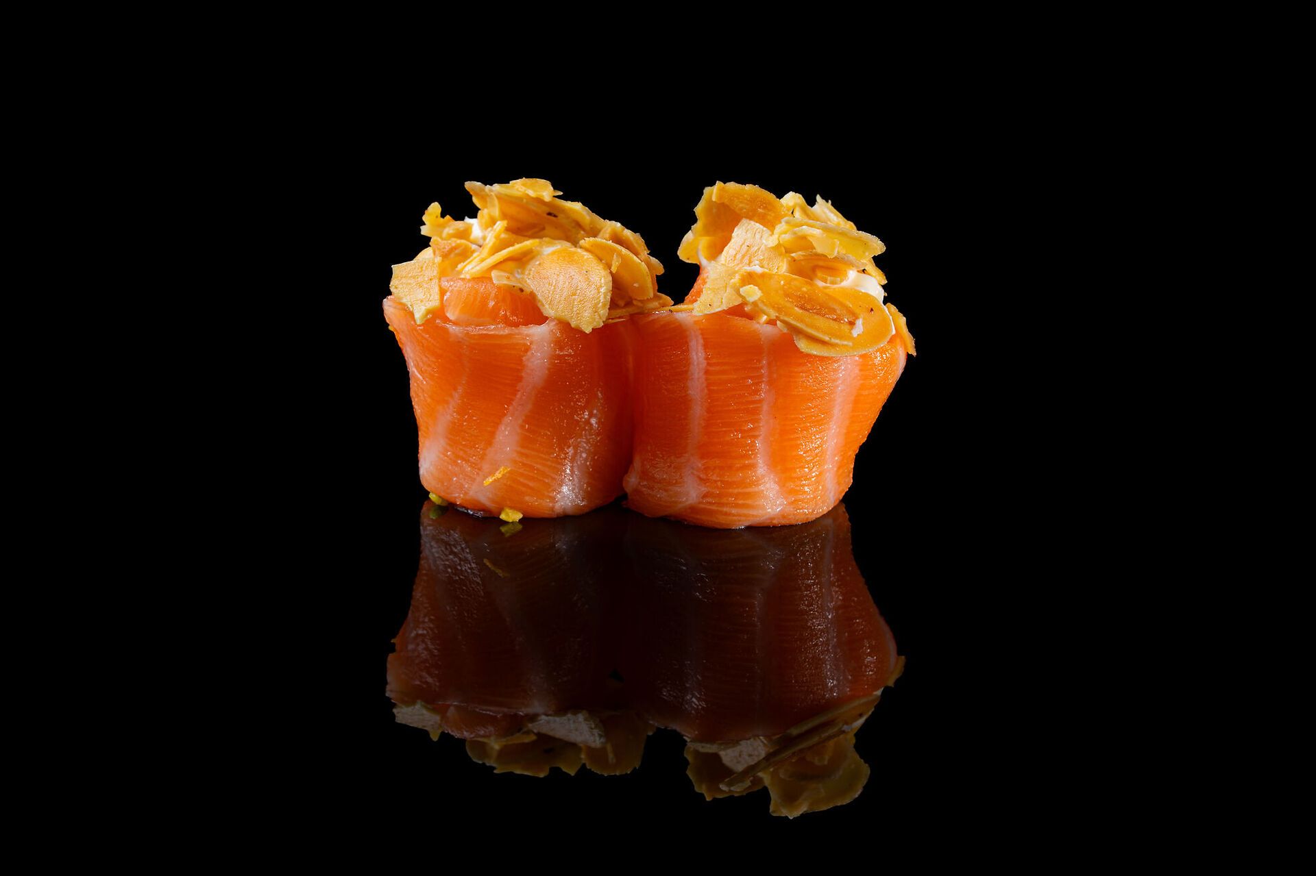 Riso, salmone, philadelphia, mandorle e salsa teriyaki