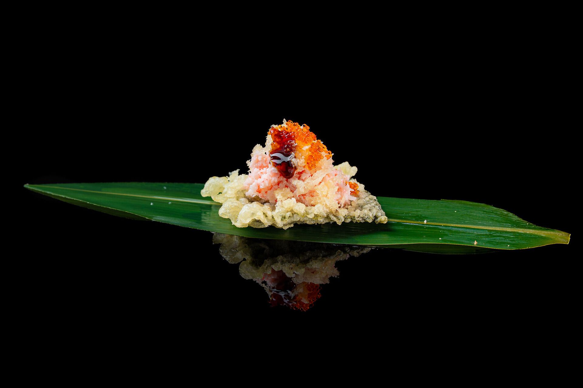 Alga con surimi di granchio, philadelphia, tobiko e Tempura