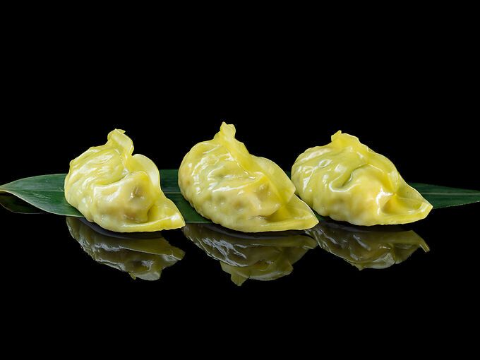 Ravioli al vapore realizzati con pasta agli spinaci e ripieni di verdure