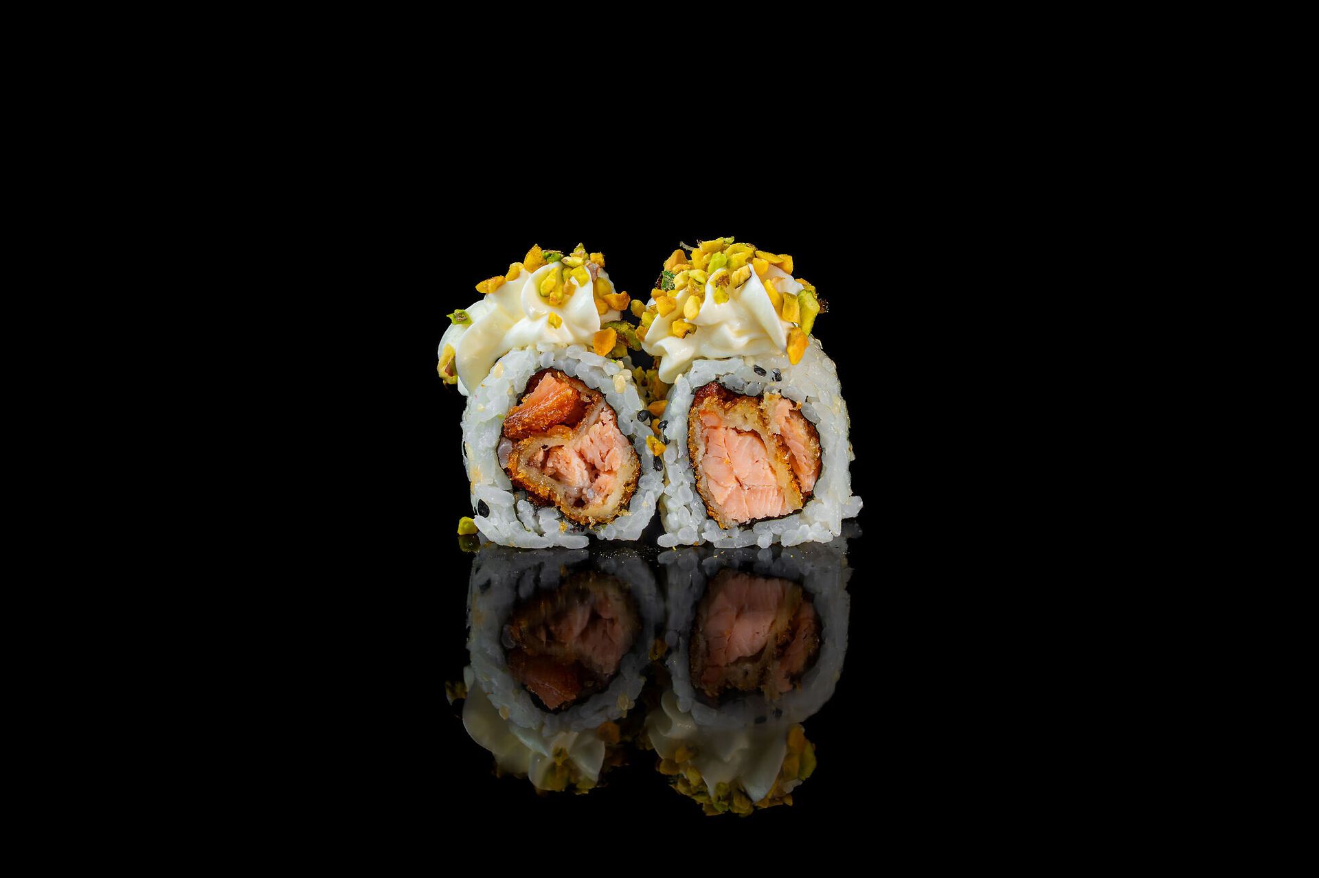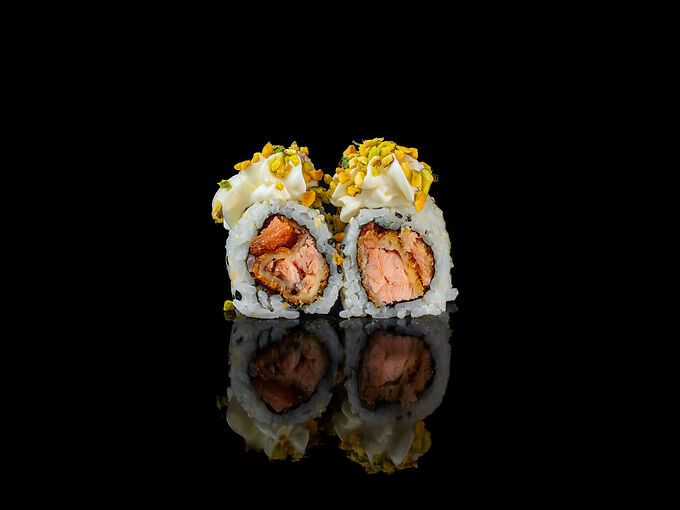 Salmone fritto, avocado, philadelphia, pistacchio, sesamo e salsa Teriyaki